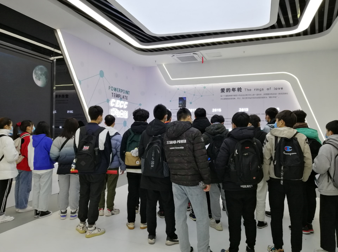 严寒的天气仍然阻止不了同学们学习交流的热情。261位同学在带队老师和工作人员的指引下先后分为三批,秩序井然地参观了中电合创电力物联网创新体验中心。