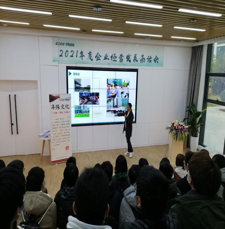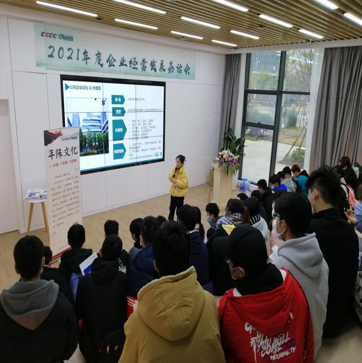 紧接着,由林烁同学、高小蝶同学为闽江学院师生介绍中电合创的企业发展历程,通过一年一度拔河比赛、“最美工位”活动等举例介绍企业文化。