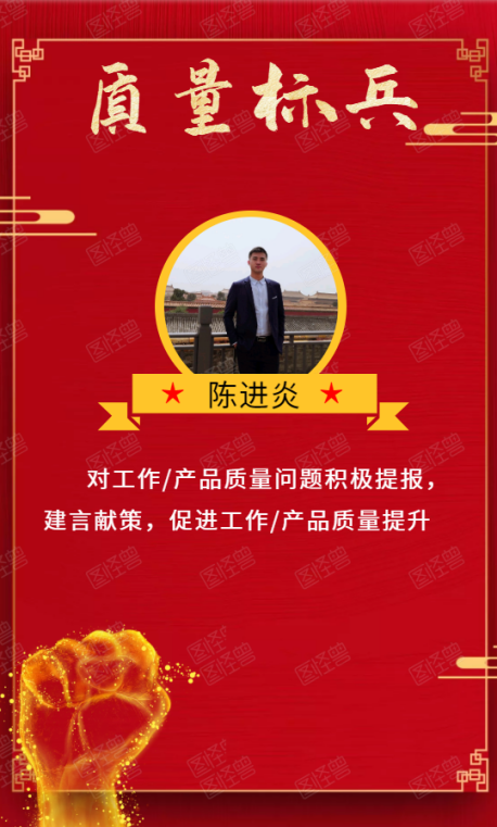 雷益炎、黄荣隆、吴海清、吴为明四位同学积极参与质量评优活动,荣获质量参与奖。好的产品质量,不是公司某个人的事情,也不仅仅是某个部门的事,是每一个员工的参与和对其中发现的问题建言献策。万里长城是一块块砖垒出来的,是无数的人力一点点修出来的,经历过时间才会如此的巍峨。产品质量亦是如此,是每一个员工的参与,不仅要看到最优秀的标兵,还要看到默默付出的参与者,相信滴水终能穿石,质量的不断提升成就更好的中电质量。