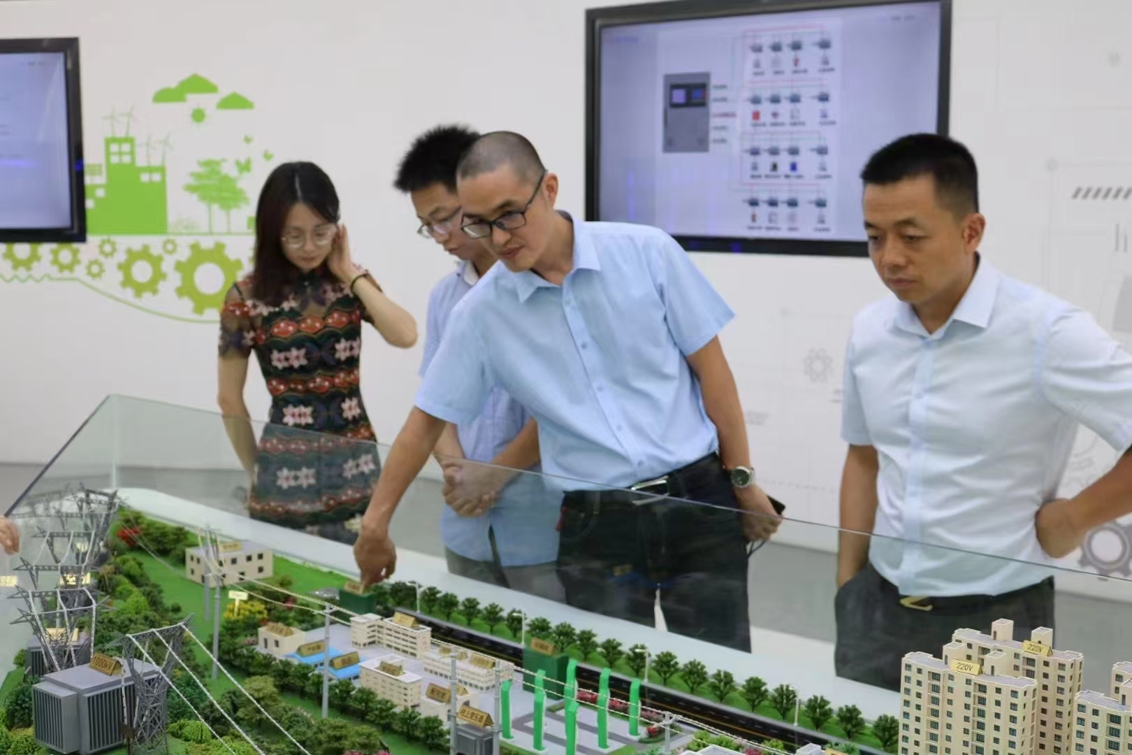 (陈坚主任尝试操作沙盘电力设备)
