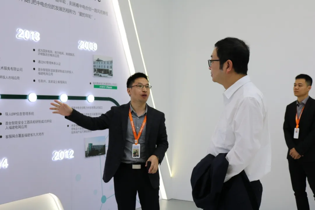 2021年11月12日下午,无线通信领域专家陈志璋院士到福建中电合创电力科技有限公司(以下简称“中电合创”)考察调研。中共福州市马尾区委书记张帆、副区长徐国珍等领导陪同调研。中电合创副总裁严士政等热情接待。