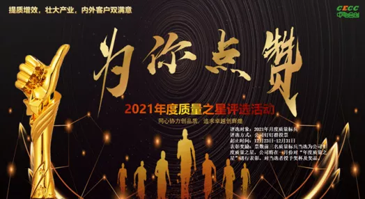为更好地提升公司各部门的工作质量和产品质量,在公司稳步发展的道路上贡献自己的一份力量,锚定内外客户双满意的目标。经上级领导批准,于12月开展2021年度“质量之星”评选活动。